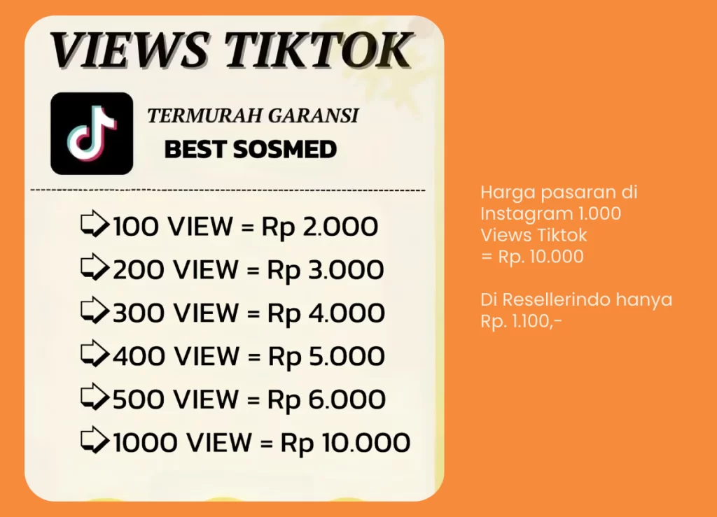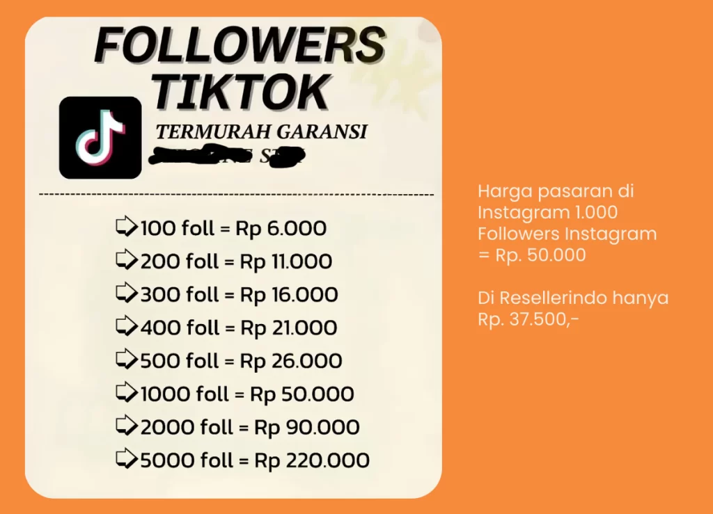 Di Instagram, 1.000 followers Tiktok dijual dengan harga Rp. 50.000. Padahal di Resellerindo, harganya cuman Rp. 37.500 aja loh.